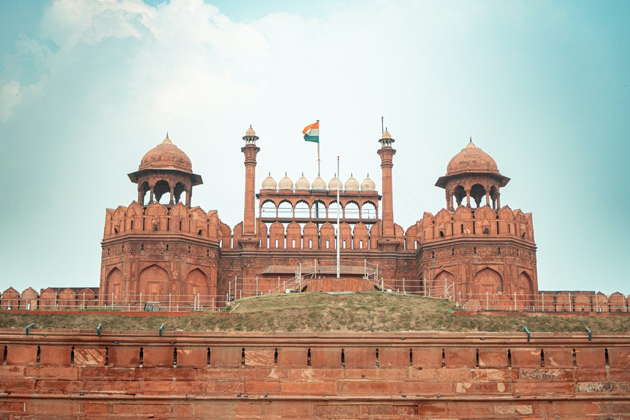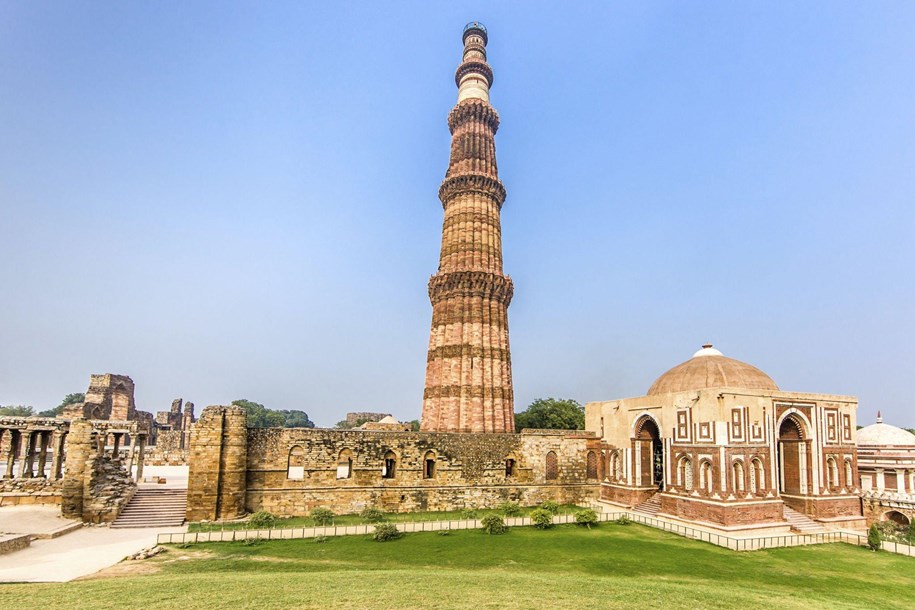 Old Delhi - >A sight-seeing tour of Old Delhi would entail visiting:- Red Fort - The red sandstone walls of Lal Qila, the Red Fort, extend for two km and vary in height from 18 metres on the river side to 33 metres on the city side. Shah Jahan started construction of the massive fort in 1638 and it was completed in 1648. Jama Masjid - Jama Masjid The splendid mosque built by Muhammad Ali Shah in the typical Mughal style with two minarets and three domes, lies to the west of the Hussainabad Imambara. Raj Ghat - the memorial site where Mahatma Gandhi was cremated. NEW DELHI - An extensive sight-seeing tour of New Delhi would include a visit:- Humayun's Tomb - Built in the mid 16th century by Haji Begum, senior wife of Humayun, the second Mughal emperor, Humayun's Tomb is an early example of Mughal architecture built in Delhi. Qutub Minar - 13 km to the south of Connaught Circus at Lalkote of 8th century Tomor Rajputs, the 72.5 m high Victory Pillar stands as a victory stand of a Muslim King Kutub-ud-din-Aibak in India. A drive along the ceremonial avenue - Rajpath, past the imposing India Gate, Parliament House, the President's Residence, Lotus Temple and would end with a drive through the Diplomatic Enclave. Overnight at Delhi.